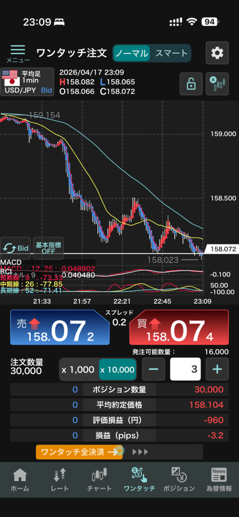 2026年4月17日、ドル円は159円を割れた瞬間に急落した。